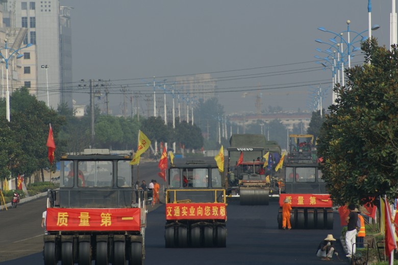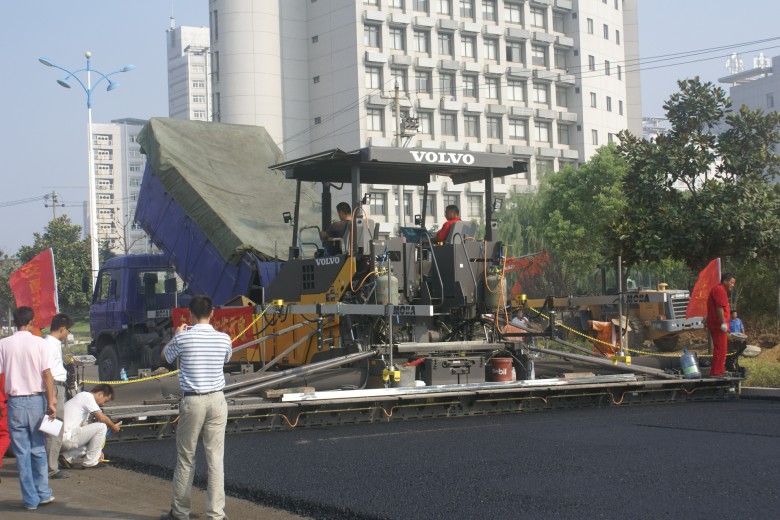 梅山路開始鋪筑瀝青混凝土